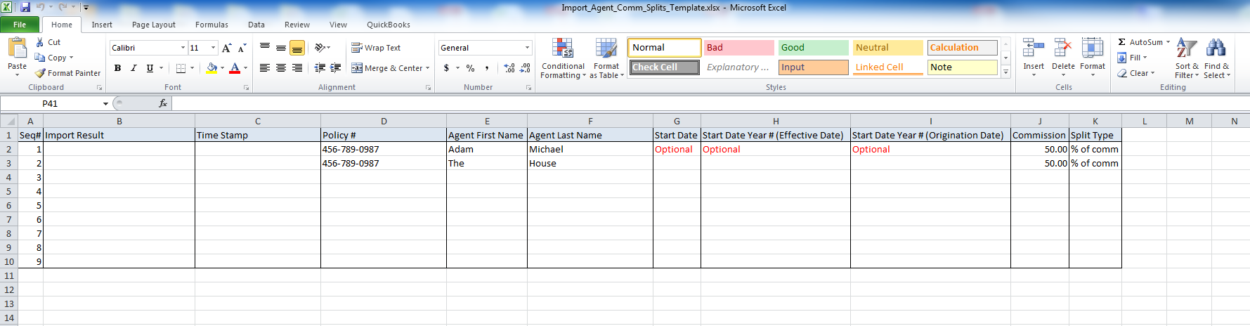 - You prepare your Excel file with the policy information and agent split details